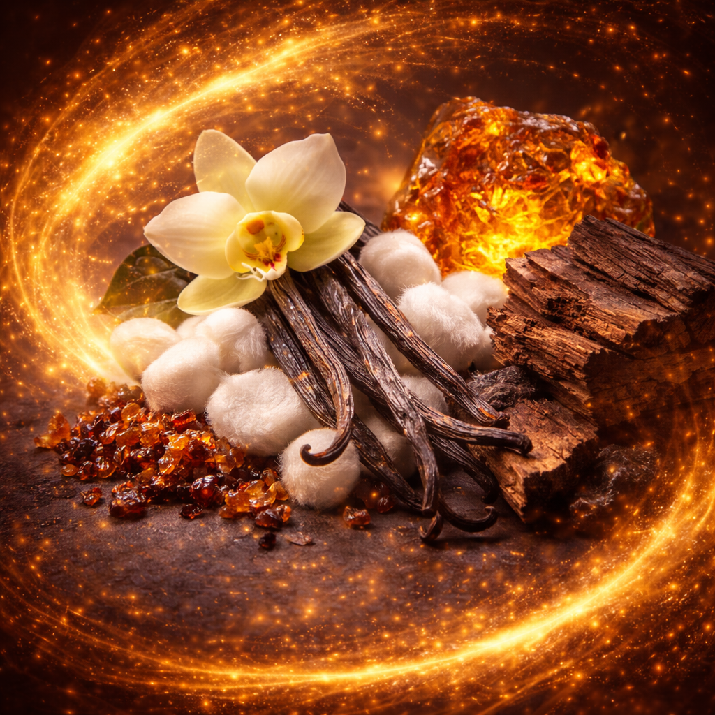 Ambră – Vetiver – Labdanum – Smirnă – Mosc – Boabă de tonka